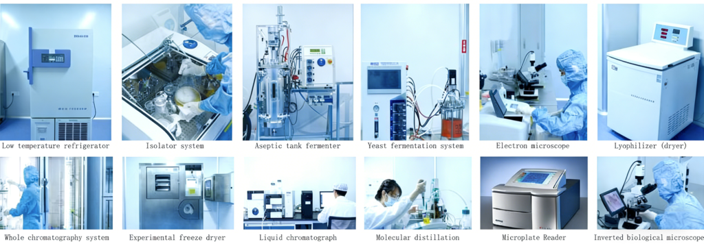 GMPC Cleanrooms: Equipped with Class 100,000 and Class 10,000 cleanrooms for filling and emulsification, a Class 10,000 microbiology laboratory, a Class 10,000 freeze-dried powder filling workshop, and a Class 1 million freeze-dried powder production environment.